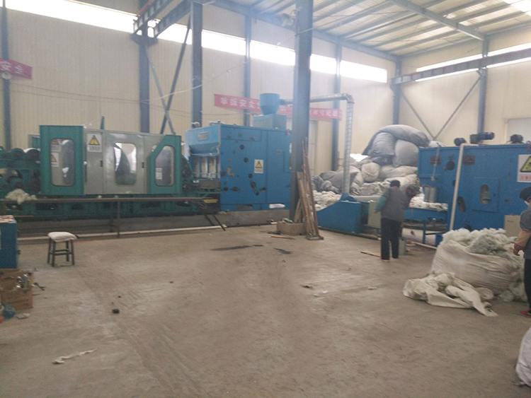 本生產(chǎn)線主要包括布邊角料開松機(jī)、棉箱、梳理機(jī)、鋪網(wǎng)機(jī)、針刺機(jī)、分切成卷機(jī)。采用服裝廠、制鞋廠、被服廠等布邊角料為原料,經(jīng)開松、梳理成網(wǎng)、針刺、成卷而制成的具有一定拉力的纖維氈。該氈主要用于溫室大棚保溫,水產(chǎn)養(yǎng)殖、禽畜飼養(yǎng),遮蓋混凝土精制品,沙發(fā)、床墊內(nèi)用襯布,汽車內(nèi)飾用布,蒙古包防寒用門簾等。